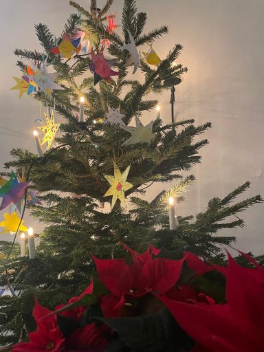 Der Förderverein des Kindergartens hat wieder Waffeln und heiße Getränke angeboten und wir hatten einen Verkauf von selbstgebackenen Plätzchen und Brot. Leider hat das Wetter den Verkauf erschwert, so dass der Verkauf im Eingangsbereich der Kirche stattgefunden hat.